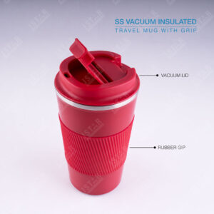 SS Vacuum Insulated Travel Mug with Grip: Spill-Proof, Insulated, and Comfortable